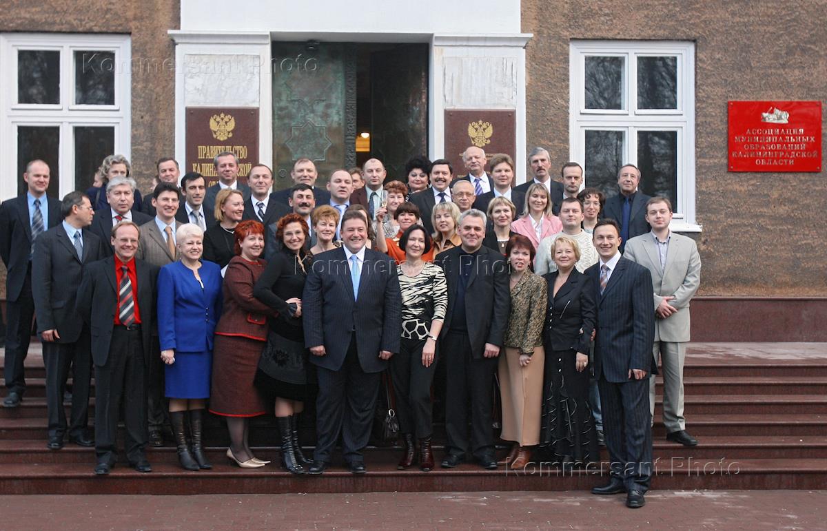 Губернатор Калининградской области Георгий Боос (первый ряд в центре) с сотрудниками Правительства Калининградской области у здания правительства.