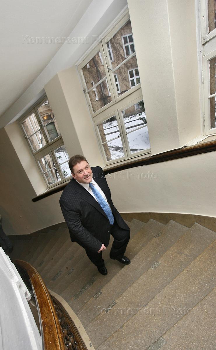 Kaliningrad Region Governor Gergiy Boos, left, gives an interview in the building of administration.
