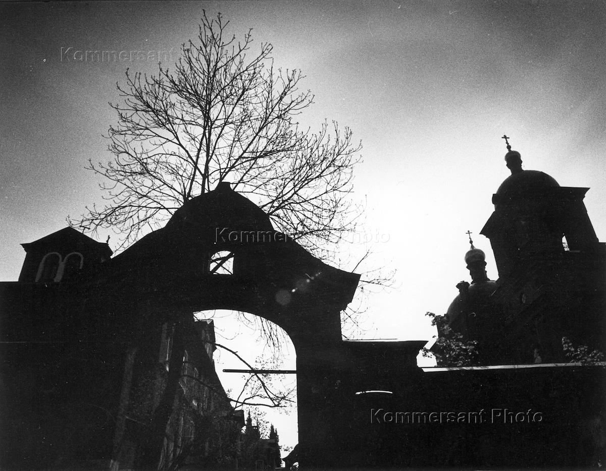 Солдат сгребает листья на территории 107 - й мотострелковой дивизии, дислоцированной в Северном городке в Вильнюсе.