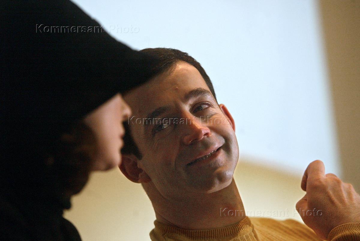 Актер Дмитрий Певцов на пресс-конференции, посвященной сериалу "В круге первом". Пресс-конференция прошла в библиотеке "Русское зарубежье".
