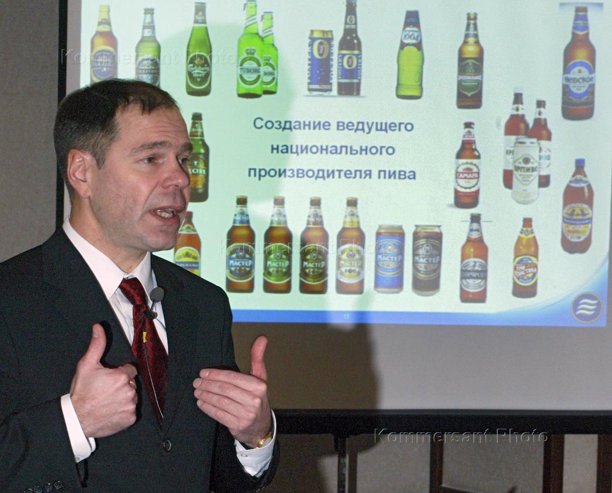 President of the "Baltika" brewing company Anton Artemyev attends a press conference in Mariott Aurora Hotel.