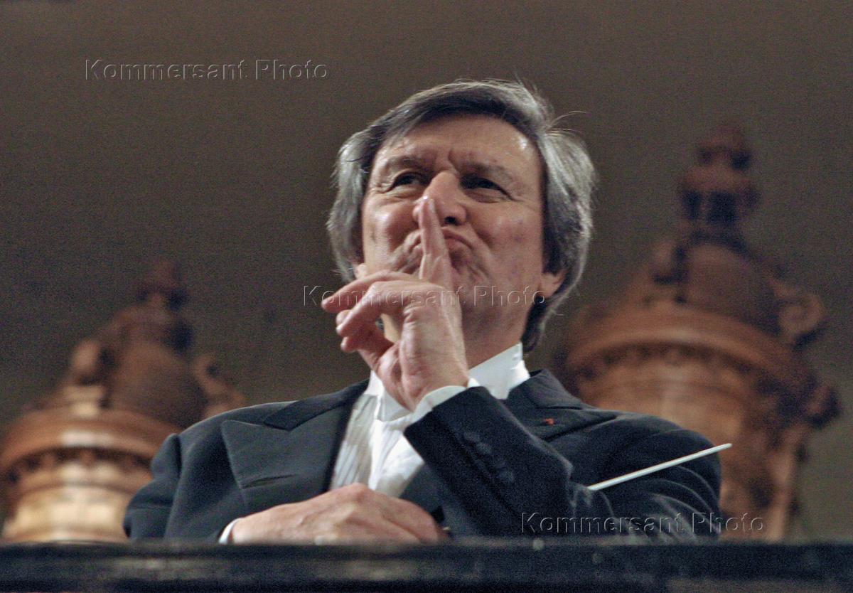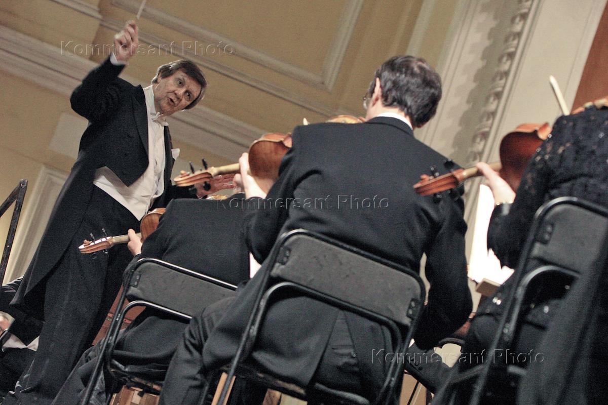 Французский дирижер Мишель Плассон во время выступления с Большим симфоническим оркестром имени П.И. Чайковского на концерте в Большом зале консерватории (БЗК).
