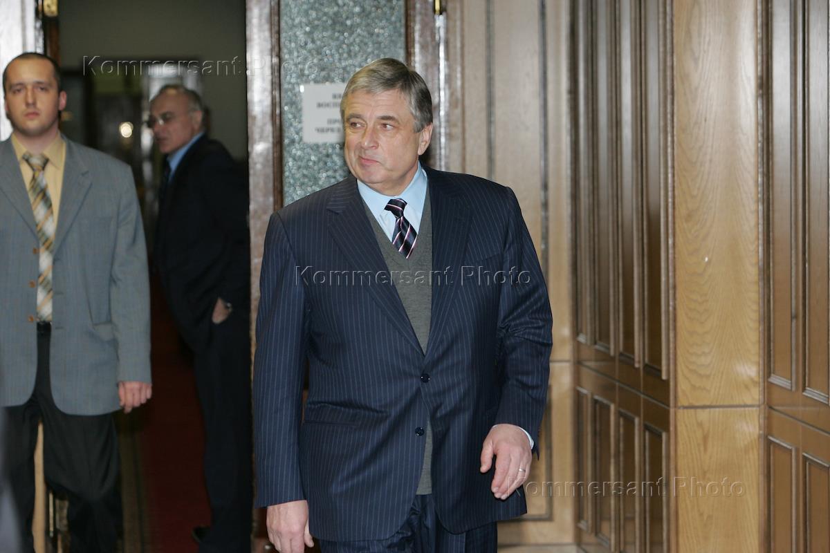Russia-Belorussia Union Chairman Pavel Borodin, right, attends the session dedicated to the adoption of the Russian-Belorussian constitution act.