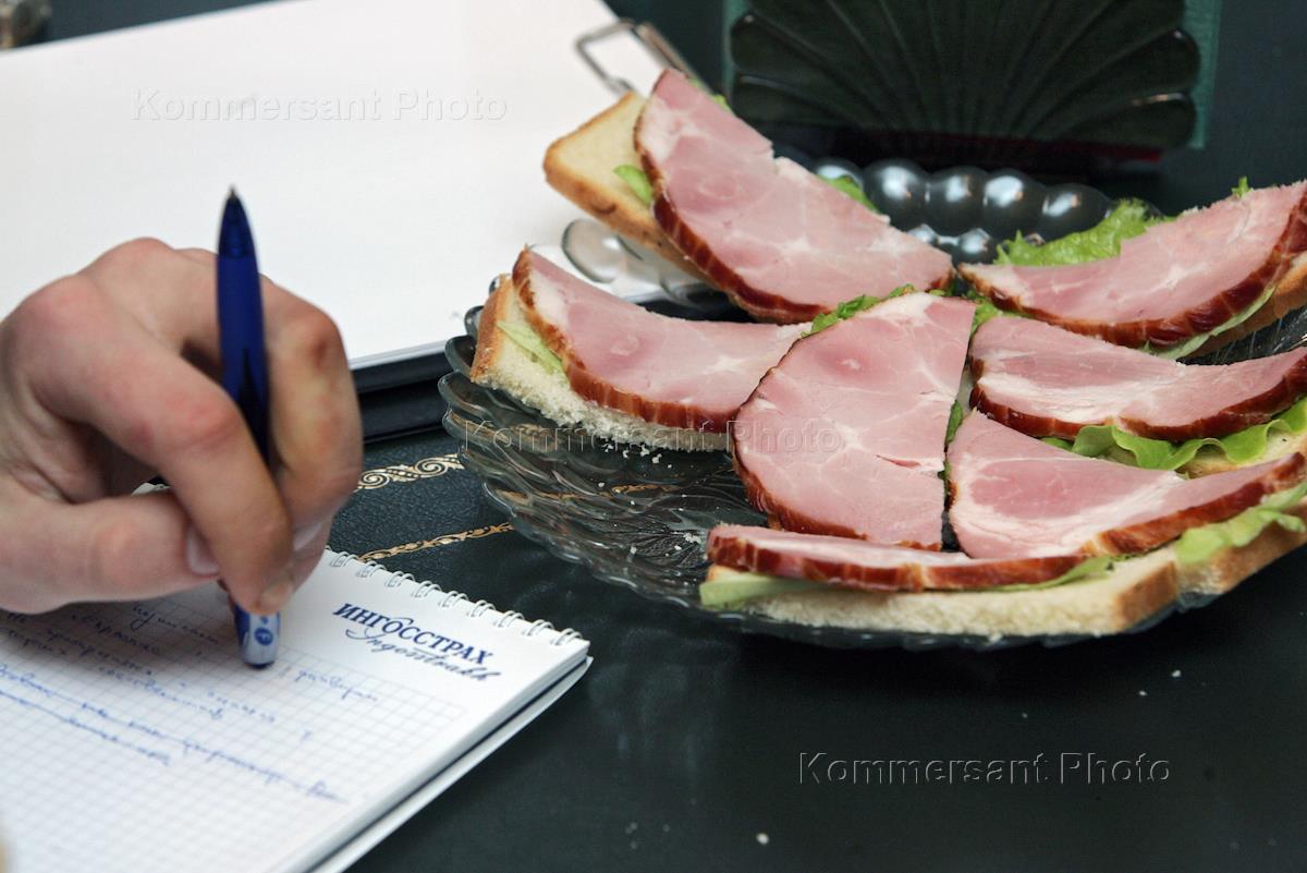 Участник брифинга компании "Находка РЕ" за столом. Брифинг прошел в центральном офисе компании.