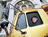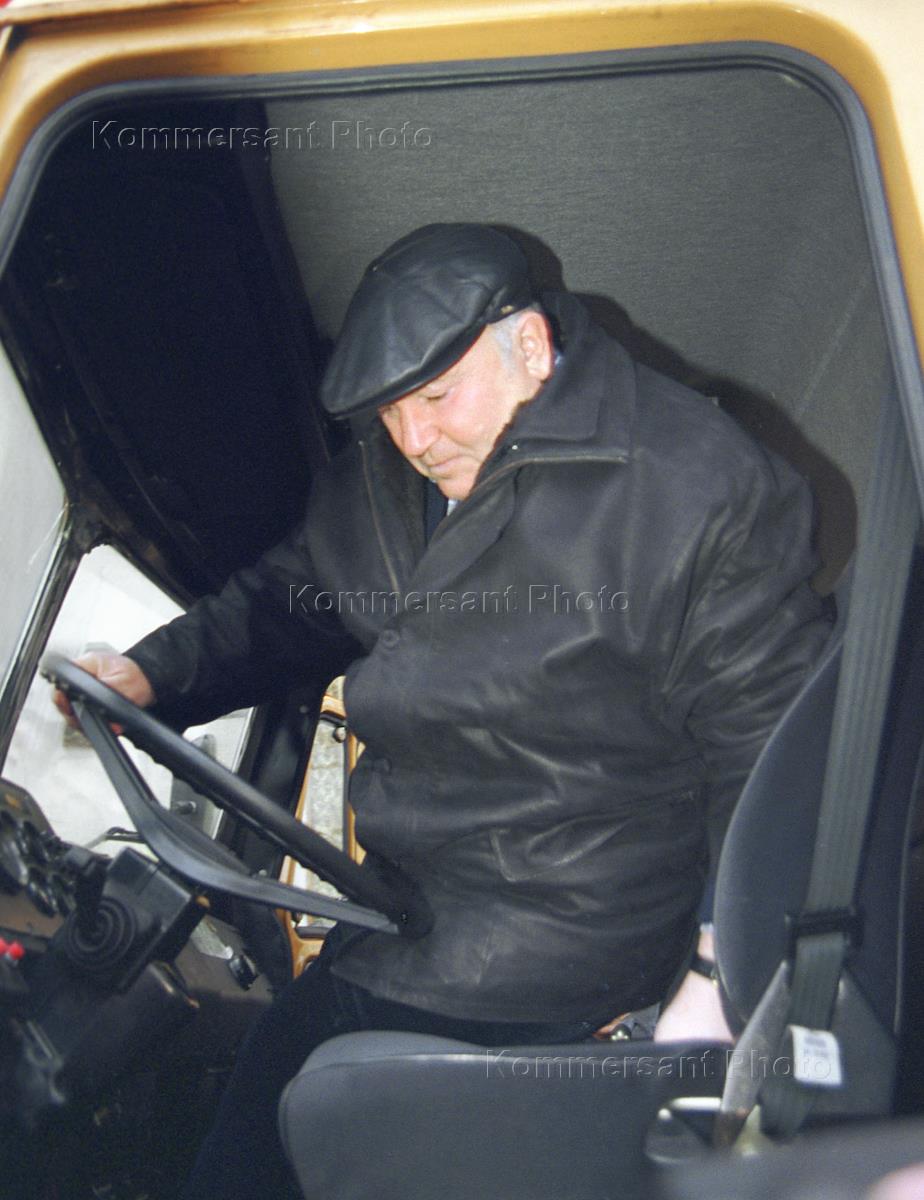 Мэр Москвы Юрий Лужков в кабине одной из трех машин ЗИЛ 433420, совершивших кругосветное путешествие. В Москве прошли торжественные мероприятия, посвященные их возвращению.