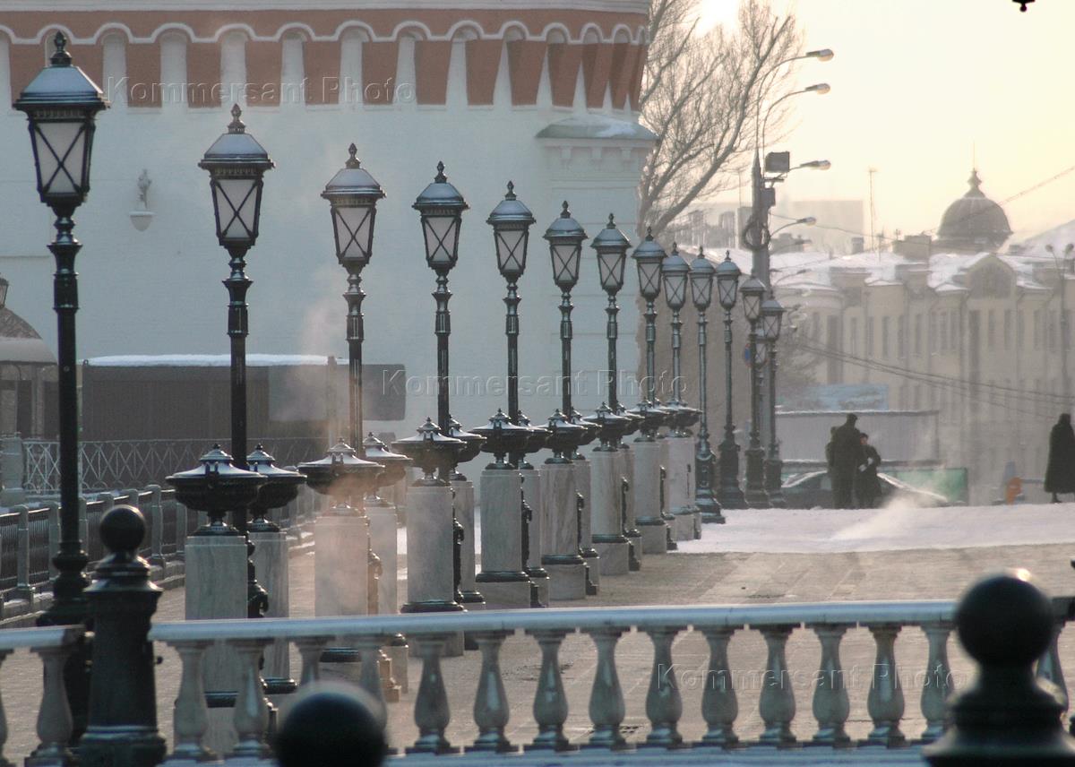 Frost in Moscow. Frontage of Oktyabrskaya metro station cowered with hoar frost.