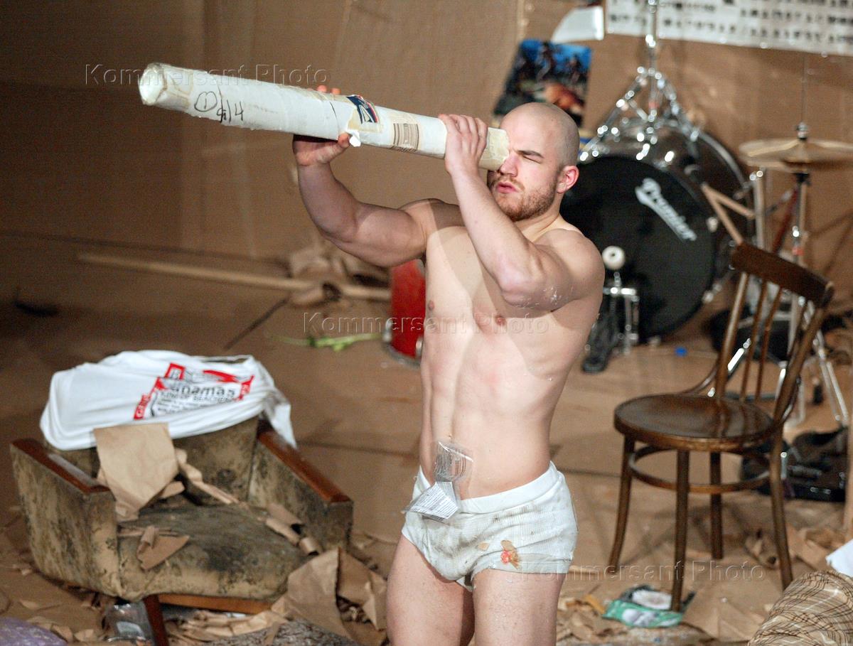 Actors of the 6th Studio of the Chekhov Moscow Art Theatre (MKHT) perform during the play "Finer Noble Gases" by american playwright Adam Rapp staged in "Na Strastnom" Theatre.