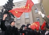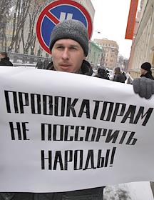 Leader of the youth union "For Motherland!" Sergey Shargunov, right, takes part in the rally held near the Ukrainian Ambassy in Moscow. Participants of the rally protest against the situation around the objects of Black Sea Fleet's hydrographic service.