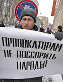 Participants of the rally held near the Ukrainian Ambassy in Moscow protest against the situation around the objects of Black Sea Fleet's hydrographic service.