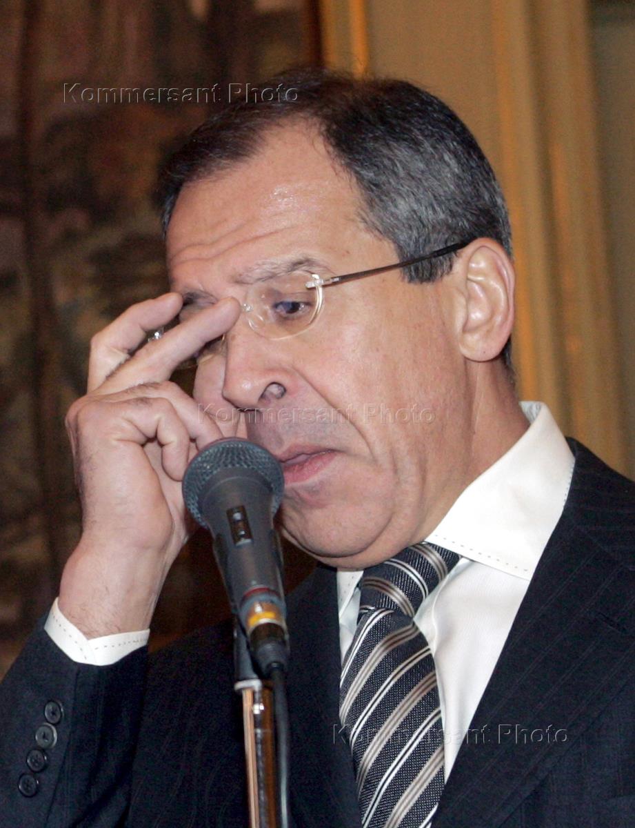 Russian Foreign Minister Sergey Lavrov is shown at the ceremony held to sign an agreement between the Russian Railways (RZD) company and the Foreign Ministry.
