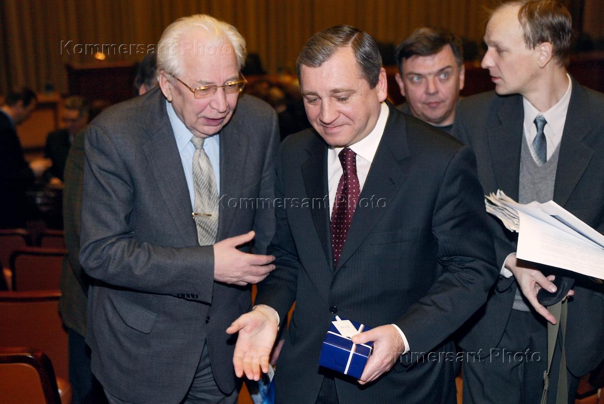 Презентация международной аэрокосмической выставки и конференции "ИЛА-2006" в Федеральном агентстве по промышленности. Руководитель Федерального агентства по промышленности России Борис Алешин (в центре) на презентации.
