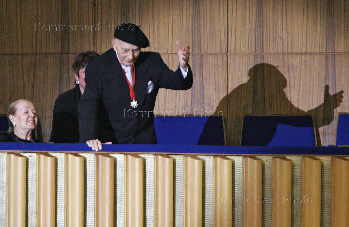 Балетмейстер, художественный руководитель Ансамбля народного танца Игорь Моисеев (справа) на концерте, посвященном его 100-летию. Концерт прошел на сцене Государственного Кремлёвского дворца.