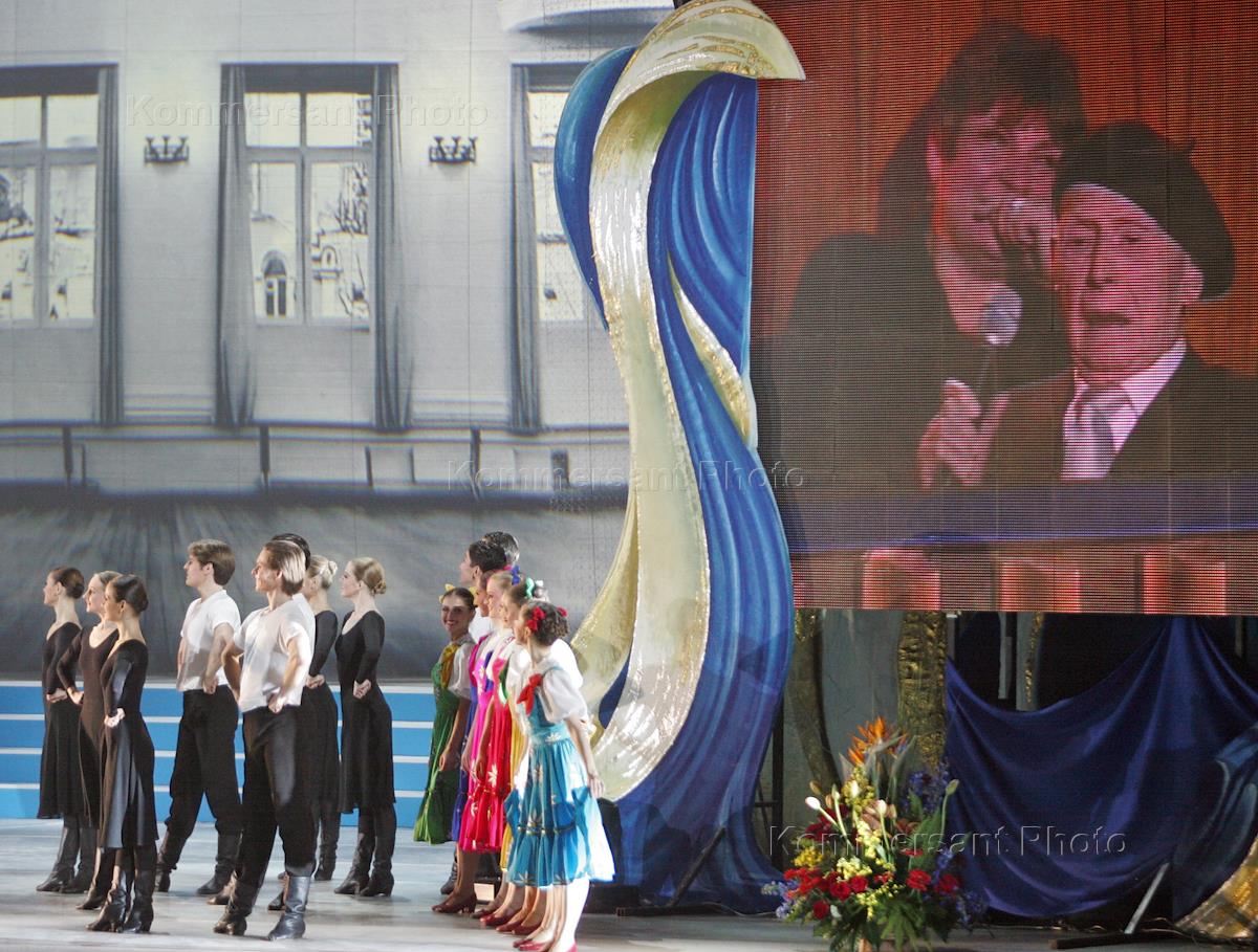 Балетмейстер, художественный руководитель Ансамбля народного танца Игорь Моисеев (справа) на концерте, посвященном его 100-летию. Концерт прошел на сцене Государственного Кремлевского дворца.