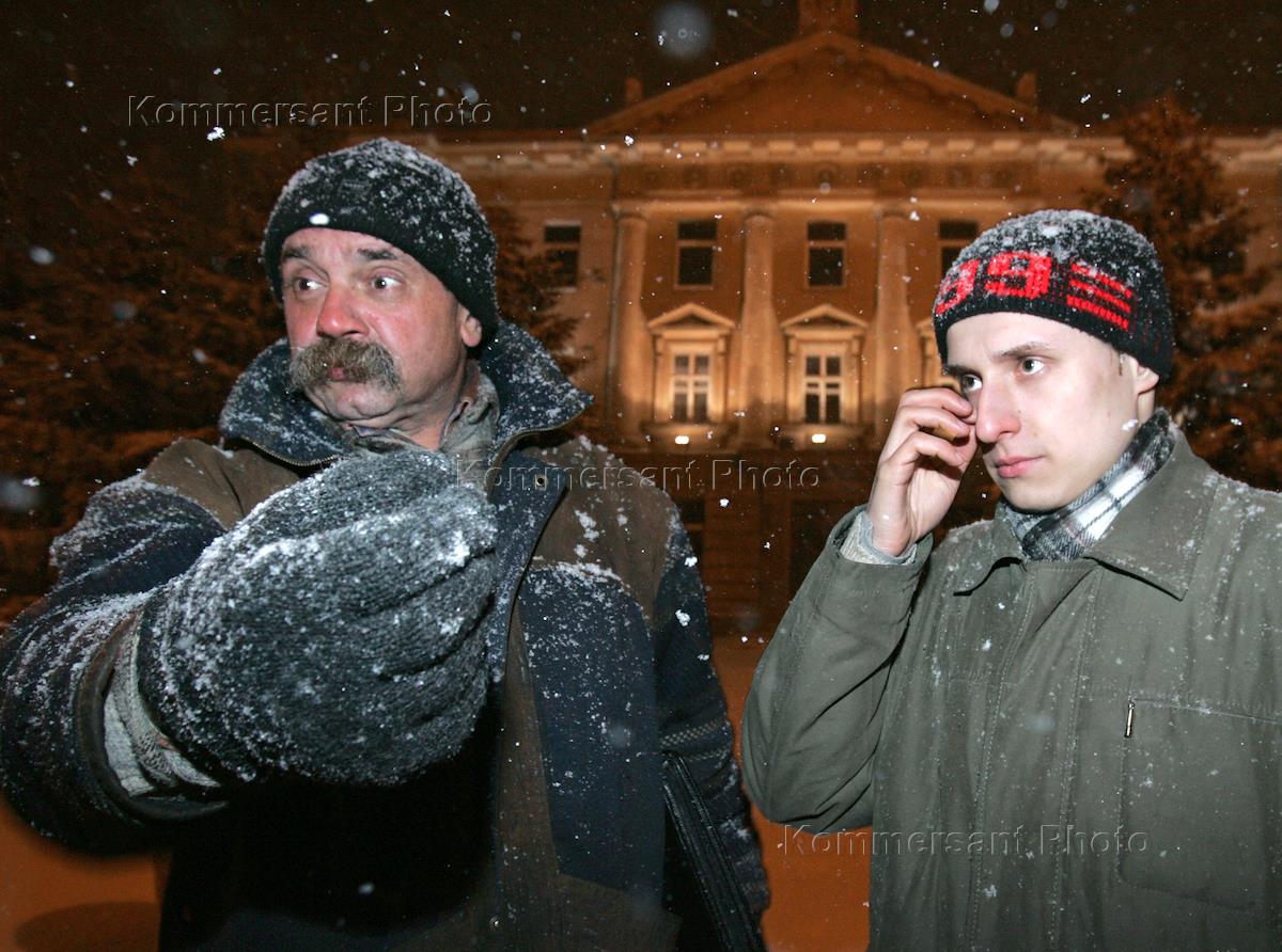 Лидер национального движения "Студенческое братство" Олег Яценко (справа) и его водитель Анатолий Декин (слева) во время интервью журналисту Издательского Дома "КоммерсантЪ".