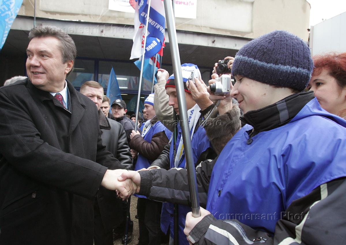 Лидер движения "Партия регионов" Виктор Янукович во время встречи с жителями города.