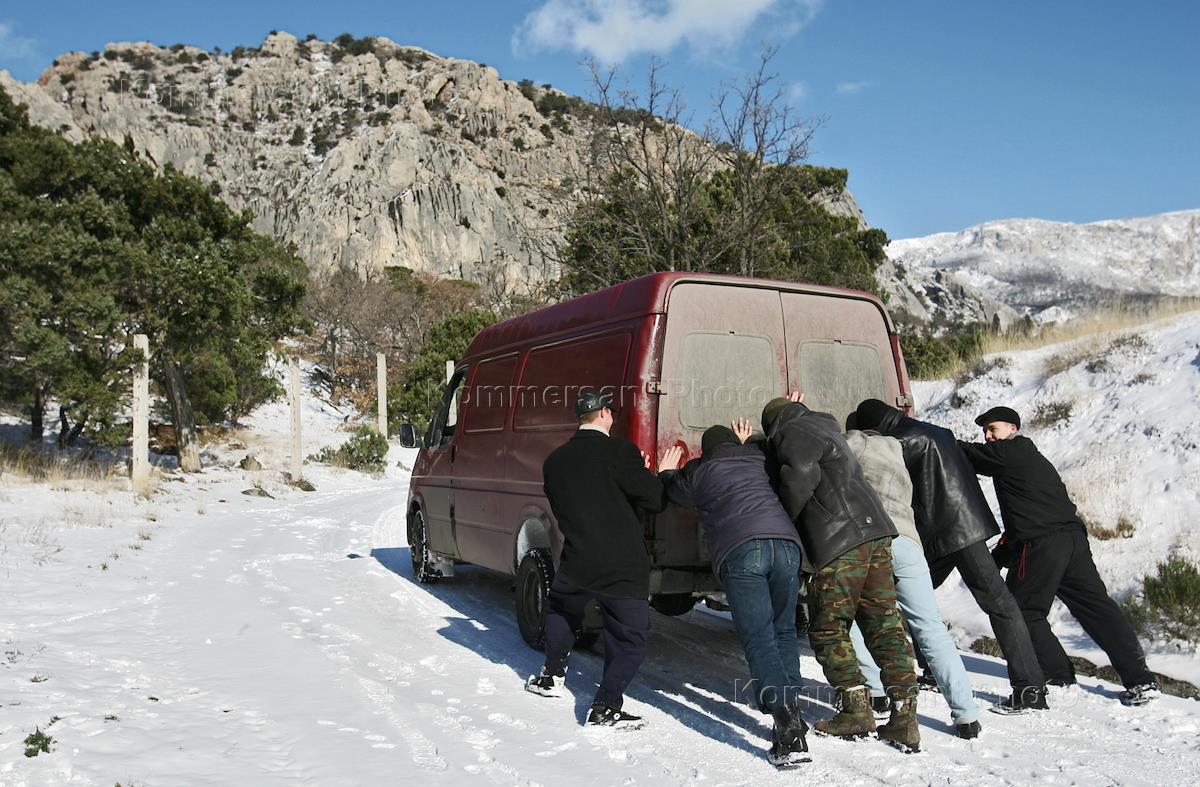 Лидер национального движения "Студенческое братство" Олег Яценко (справа) и его водитель Анатолий Декин (слева) во время интервью журналисту Издательского Дома "КоммерсантЪ".