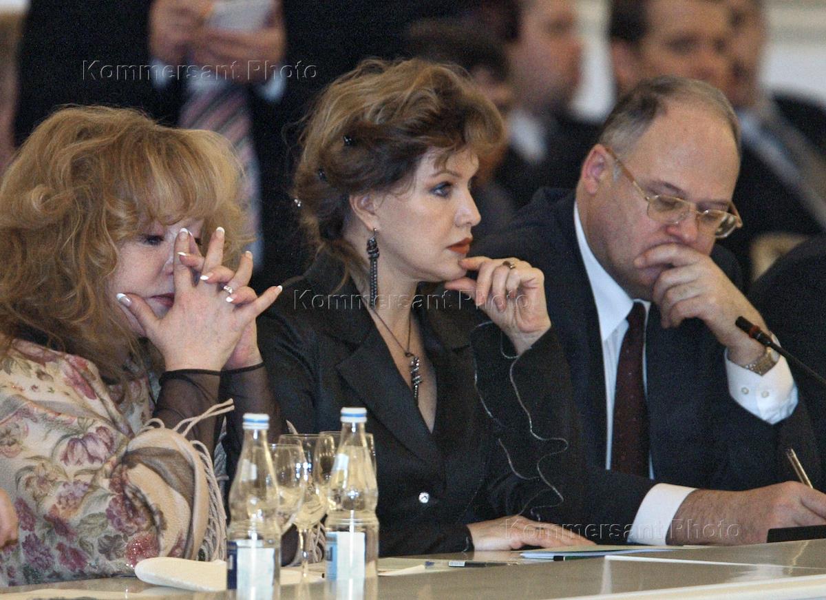 Певица Алла Пугачева (слева) и актриса Елена Проклова (в центре) на первом пленарном заседании Общественной палаты в Георгиевском зале Кремля.