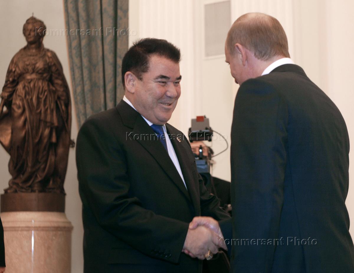 Президент России Владимир Путин (справа) во время встречи с президентом Туркмении Сапармуратом Ниязовым (слева) в Кремле.
