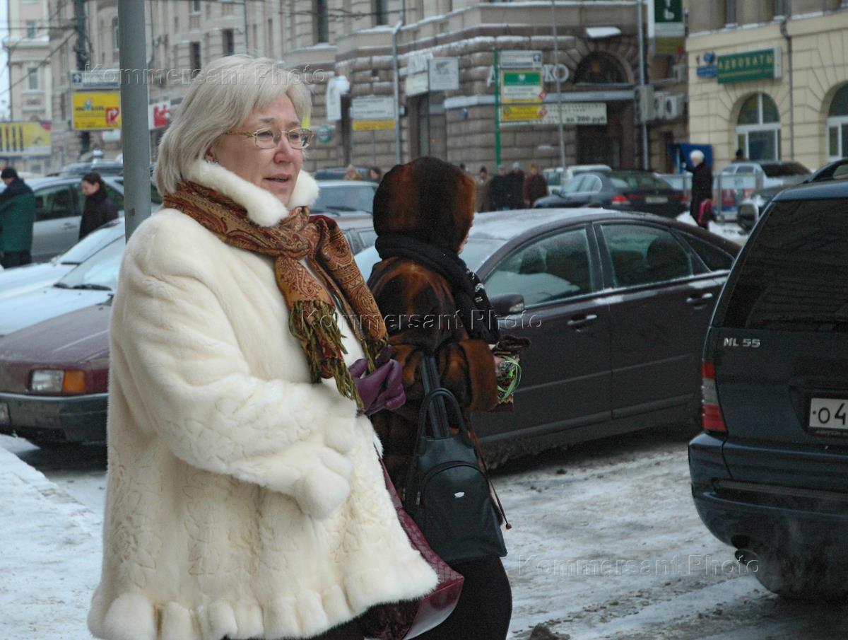 Mediuasoyuz Vice President Yelena Zelinskaya is shown after the press conference of the Public Chamber members. The conference took place in Interfax news agency.