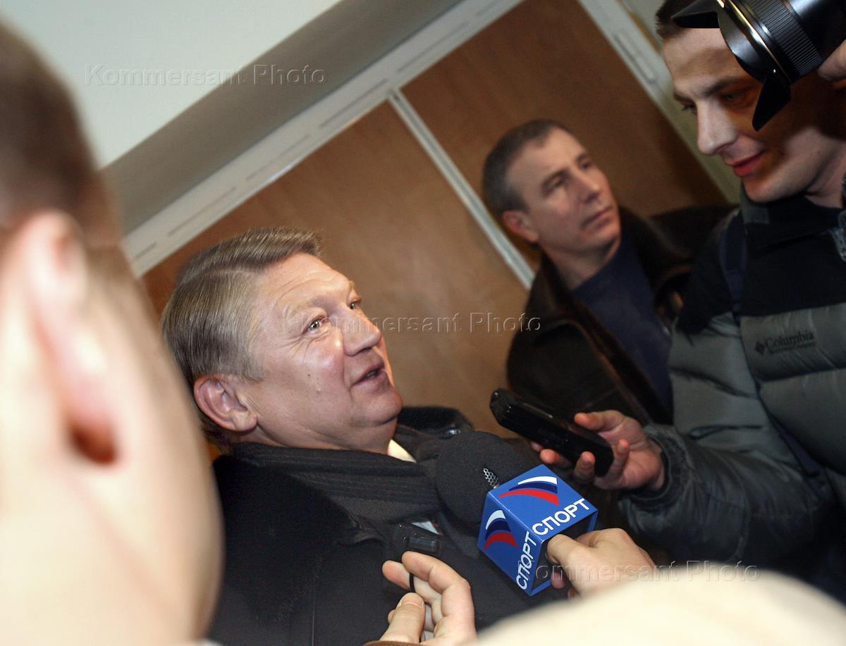 FC Dinamo Moscow General Director Yury Zavarzin, left, takes part in elections of the Russian Football Premier League (RFPL) president. President of FC CSKA Yevgeny Giner was reelected as RFPL president.