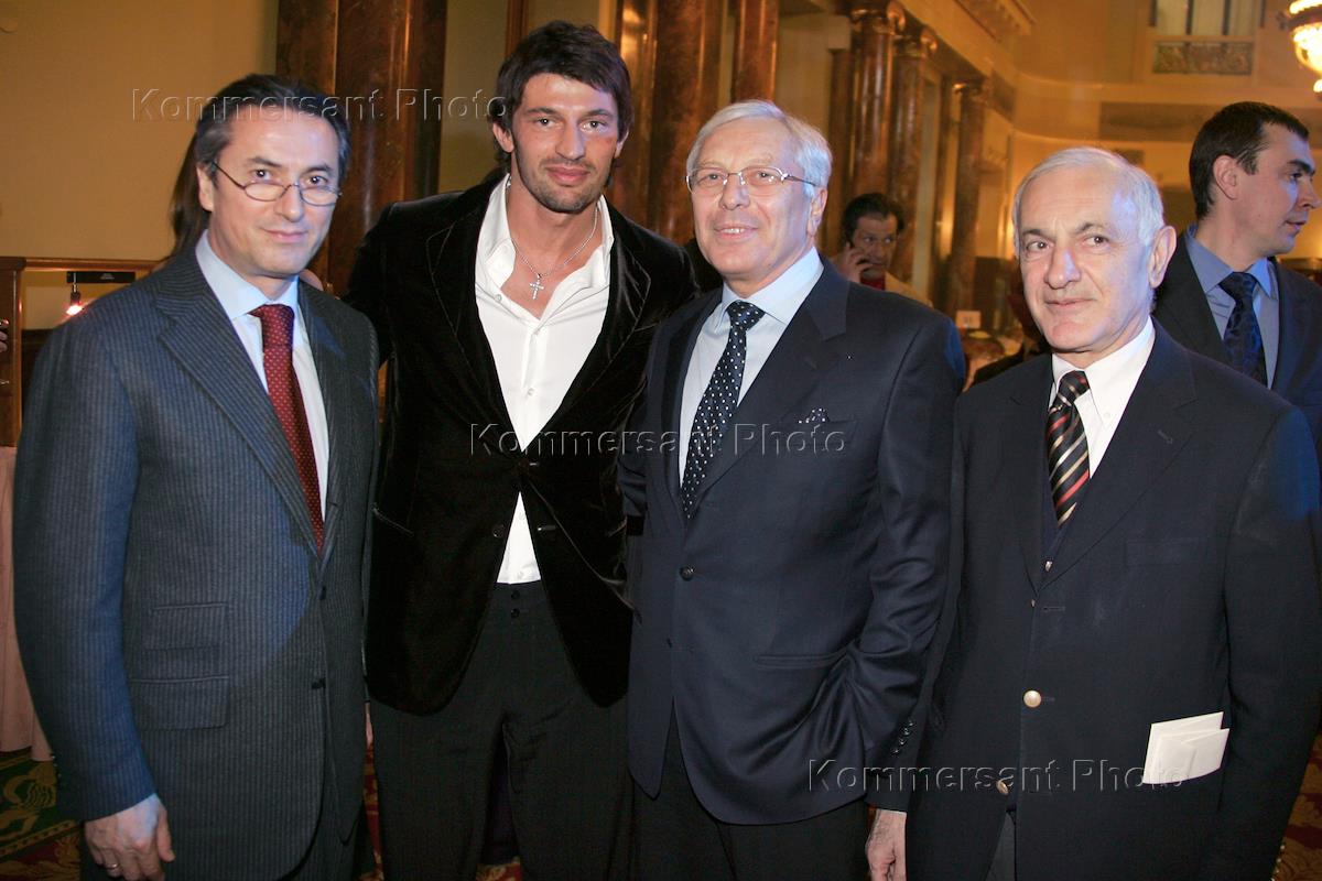 Бизнесмен Алимжан Тохтахунов (в центре) на церемонии вручения приза "Звезда" лучшему футболисту стран СНГ и Балтии 2005 года нападающему итальянского "Милана" и сборной Украины Андрею Шевченко. Церемония прошла в гостинице "Метрополь".