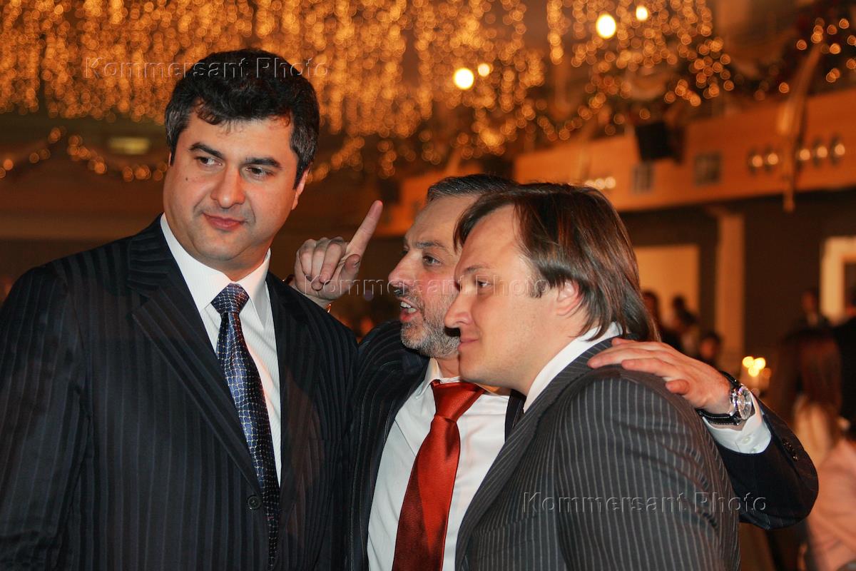 Бизнесмен Анзори Аксентьев-Кикалишвили (второй слева) на праздновании дня рождения художника – постановщика студии "Краснов дизайн" Бориса Краснова в "Форум-Холле".