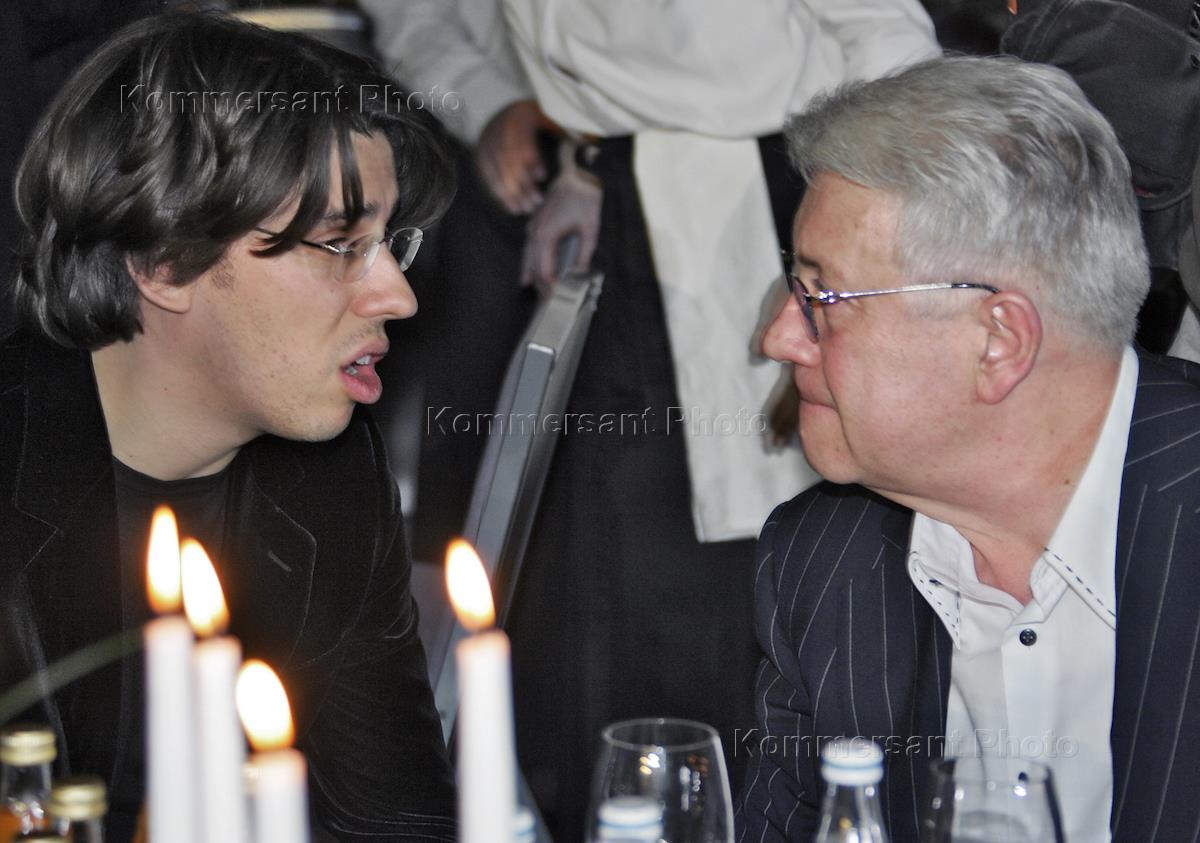 Russian Jewish Congress President Vyatscheslav Kantor, left, attends the birthday party of Krasnov Design studio art director Boris Krasnov held in "Forum Hall".