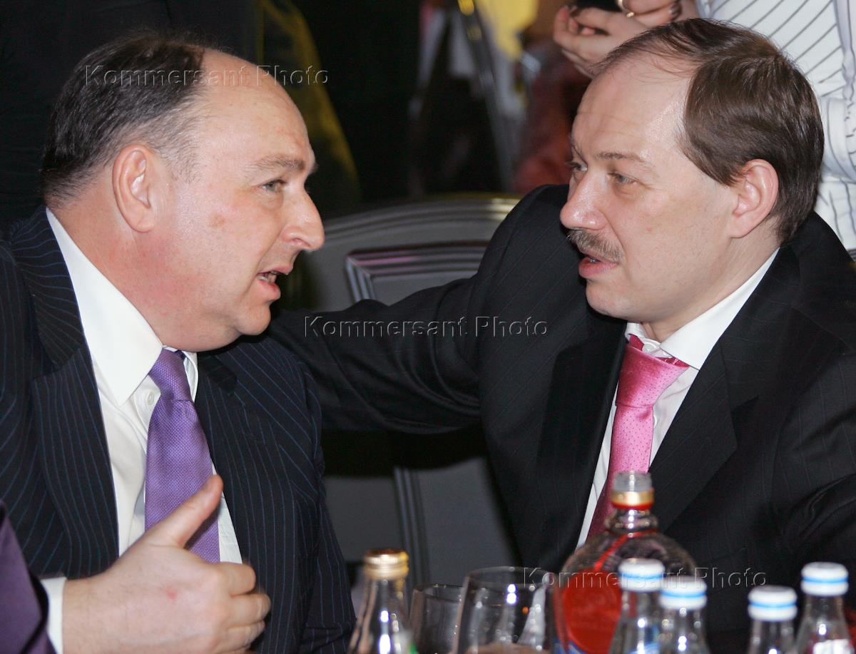 Russian Jewish Congress President Vyatscheslav Kantor, left, attends the birthday party of Krasnov Design studio art director Boris Krasnov held in "Forum Hall".