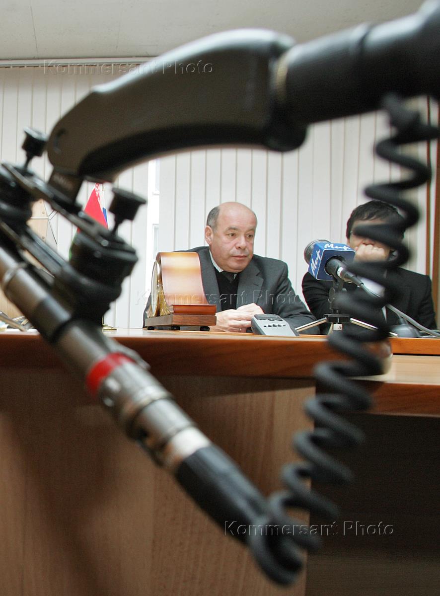 Министр культуры Беларуси Владимир Матвейчук (слева), министр культуры и массовых коммуникаций России Александр Соколов (в центре) и руководитель Федерального агентства России по культуре и кинематографии Михаил Швыдкой (справа) после заседания совместной коллегии министерства культуры и массовых коммуникаций России и министерства Белоруссии в зале коллегии Минкультуры.