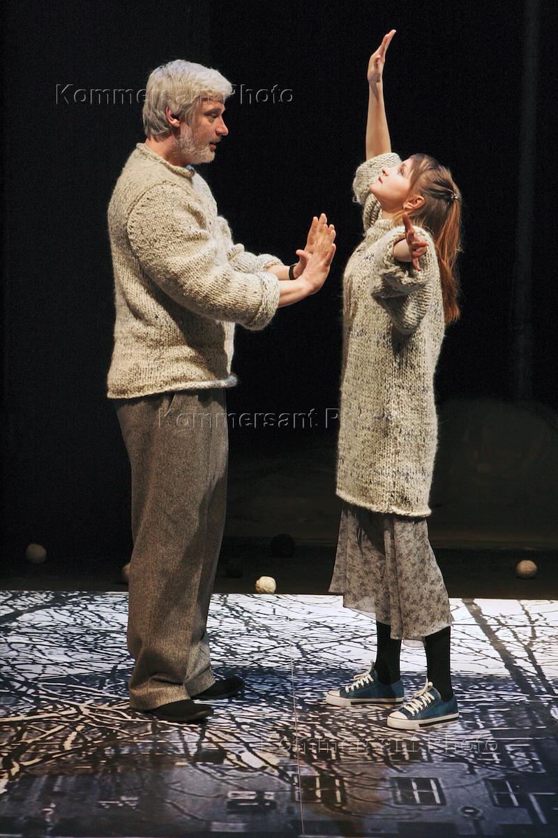 Спектакль "Река с быстрым течением" по произведениям Владимира Маканина в постановке режиссера Марины Брусникиной на Малой сцене Московского художественного театра (МХТ) имени А.П.Чехова. Актер Игорь Золотовицкий (справа) во время спектакля.