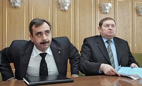 Исполнительный директор ОАО "Москвич" Евгений Козлов (слева) и внешний управляющий ОАО "Москвич" Анатолий Сиваков (справа) во время пресс-конференции на тему: "Итоги работы ОАО Москвич в 2005 году и дальнейшие перспективы предприятия". Пресс-конференция прошла в заводоуправлении ОАО "Москвич".