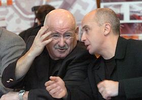 Заместитель руководителя Федерального Агентства по культуре и кинематографии России Александр Голутва (слева) и продюсер Марк Рудинштейн (справа) во время встречи, посвященная кинофестивалю "Золотой ангел", в Смольном. На встрече прошла презентация новой концепции использования пространства Дворцовой площади.