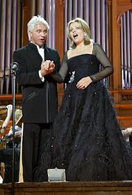 Оперные певцы Рене Флеминг (слева) и Дмитрий Хворостовский (справа) во время концерта в Большом зале консерватории.