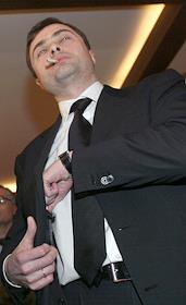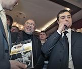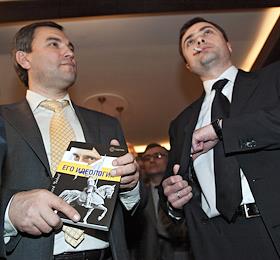 Заместитель руководителя администрации Президента России Владислав Сурков (слева) на презентации книги Члена Общественной палаты, редактора отдела политики "Русского Журнала" Алексея Чадаева (справа) "Путин. Его идеология". Презентация, организованная центральным исполнительным комитетом всероссийской политической партии "Единая Россия", прошла в ресторане "Da Cicco".