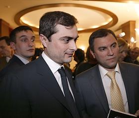 Заместитель руководителя администрации Президента России Владислав Сурков на презентации книги Члена Общественной палаты, редактора отдела политики "Русского Журнала" Алексея Чадаева "Путин. Его идеология". Презентация, организованная центральным исполнительным комитетом всероссийской политической партии "Единая Россия", прошла в ресторане "Da Cicco".