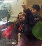 Активисты Авангарда Красной Молодежи (АКМ) во время проведения радикальной акции протеста против реализуемой Правительством России реформы ЖКХ. Акция прошла у здания Департамента Жилищно-коммунального хозяйства и благоустройства города Москвы.
