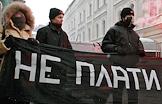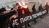Активисты Авангарда Красной Молодежи (АКМ) во время проведения радикальной акции протеста против реализуемой Правительством России реформы ЖКХ. Акция прошла у здания Департамента Жилищно-коммунального хозяйства и благоустройства города Москвы. Плакат "Не плати поганой власти!".