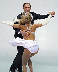XX зимние Олимпийские игры 2006. Члены олимпийской сборной России по фигурному катанию в танцах на льду Яна Хохлова и Сергей Новицкий во время выступления в программе "Обязательный танец".