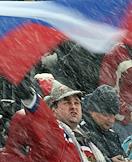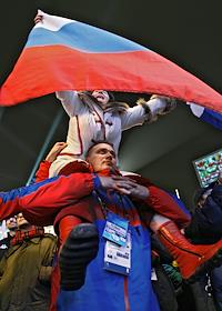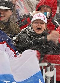 XX зимние Олимпийские игры 2006. Болельщики олимпийской сборной России во время соревнования по биатлону в гонке с преследованием среди женщин.