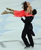 XX зимние Олимпийские игры 2006. Члены олимпийской сборной России по фигурному катанию в танцах на льду Татьяна Навка и Роман Костомаров во время выступления в программе "Обязательный танец" , в которой они заняли второе место.