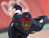 XX зимние Олимпийские игры 2006. Член олимпийской сборной США по конькобежному спорту Шени Дэвис во время соревнования на дистанции 1000 метров. Дэвис завоевал золотую медаль Олимпиады.