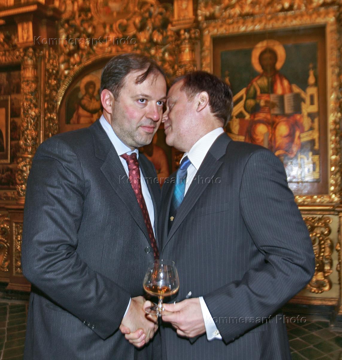 Вице-премьер правительства Москвы Владимир Ресин (слева) и президент Российского союза промышленников и предпринимателей (РСПП) Александр Шохин (справа) на церемонии вручения премии "Персона года" в Патриарших палатах Кремля.