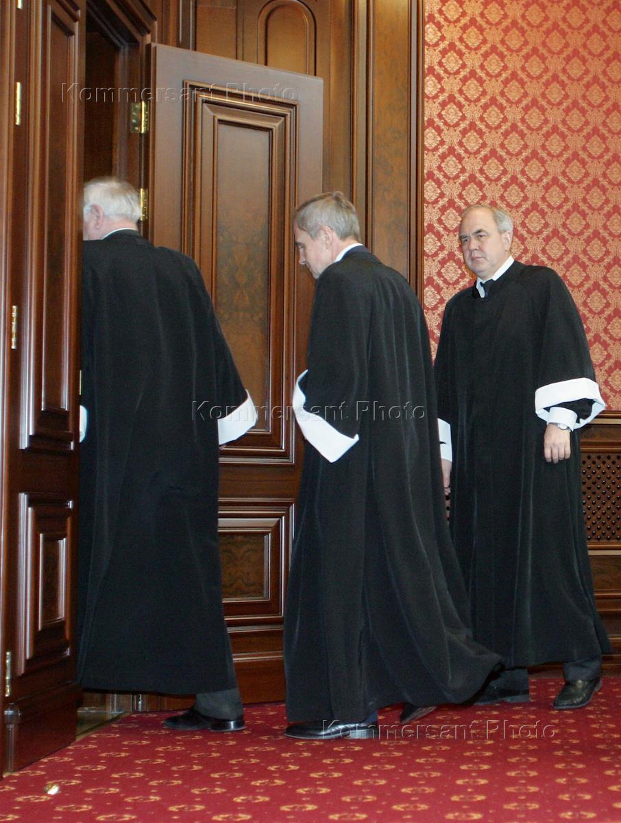 Председатель Конституционного суда России Валерий Зорькин (справа) во время заседания Конституционного суда России.