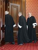 Заместитель генерального прокурора России, главный военный прокурор генерал-полковник юстиции Александр Савенков (справа) и постоянный представитель Государственной Думы России в Конституционном суде Елена Мизулина (в центре) на заседании Конституционного суда России.