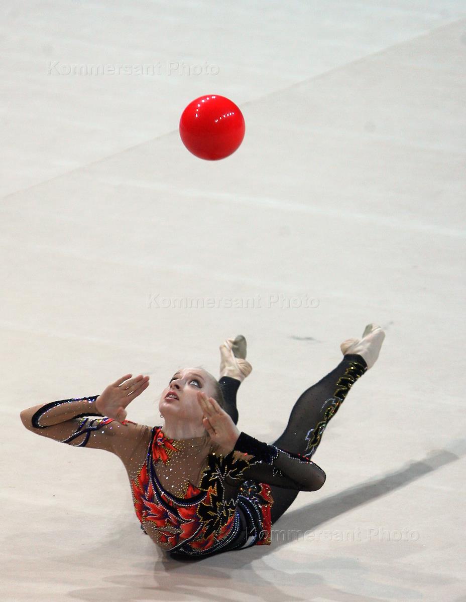 Российская гимнастка Вера Сесина во время выступления на соревнованиях по художественной гимнастике "Гран-при Москва - 2006" в Универсальном спортивном зале "Дружба". Вера Сесина выиграла упражнения с мячом и булавами.