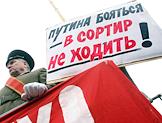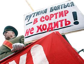 Митинг Коммунистической партии России (КПРФ) против увеличения тарифов ЖКХ прошел на Калужской площади. Плакат "Путина бояться - в сортир не ходить!".