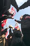 Члены Национал-большевистской партии (НБП) на митинге Коммунистической партии России (КПРФ) против увеличения тарифов ЖКХ. Митинг прошел на Калужской площади.