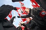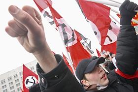 Национал-большевики во время митинга сторонников Коммунистической партии России (КПРФ) против реформы Жилищно-коммунального хозяйства (ЖКХ). Митинг прошел на Калужской площади.
