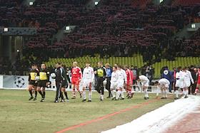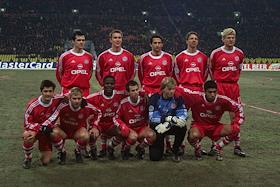 Футбольная команда "Bayern" (Мюнхен) перед началом второго матча с командой "Спартак" (Москва). Матч завершился поражением московского "Спартака" со счетом 0 : 3.