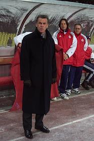 Тренер команды "Bayern" из Мюнхена Оттмар Хитцфельд наблюдает за игрой своей команды на стадионе "Лужники". Второй матч между командами "Спартак" (Москва) и "Bayern" (Мюнхен) завершился поражением московского "Спартака" со счетом 0 : 3.